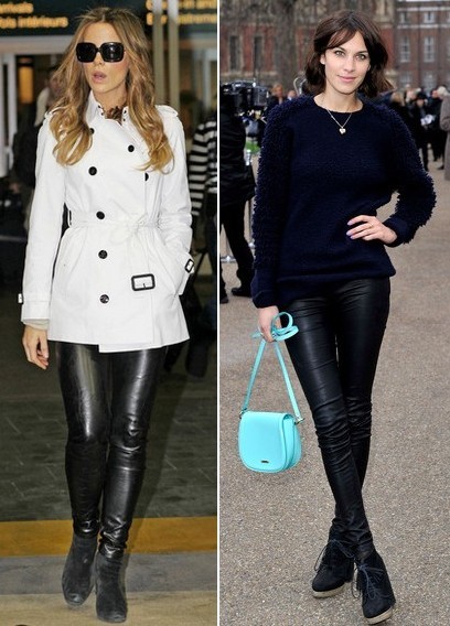 Mir persönlich gefallen die Latex Hosen nicht und ich verstehe auch nicht deren immer zu wachsende Nachfrage. Allein die Tatsache, dass Latex Hosen von Lindsay Lohan, Britney Spears und Nicky Hilton getragen werden im Gegensatz zu Alexa Chung und Kate Beckinsale (Foto unterhalb), die Leder Hosen präferieren. Ich denke, dass wir alle wissen, wer den besten Geschmack in Sachen Mode hat :)