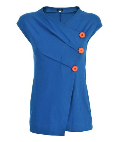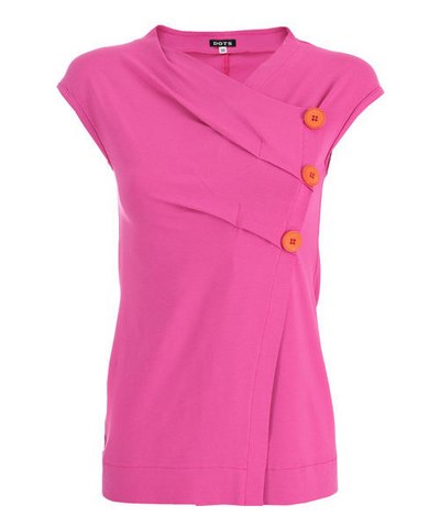 Nicht nur die größten und bekanntesten Designer haben sich für den Trend Color Blocking vorbereitet. Auch andere bekannte Marken gehen diesen Weg, wie zum Beispiel die Marke DOTS, die in diesem Jahr fantastische und bunte Oberteile anbietet passend zum aktuellen Trend. Die markanten orange farbigen Knöpfe präsentieren dich auf dem Top einfach phänomenal.