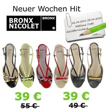 Nur in dieser Woche vom 22 bis zum 28 Juni 2011 sind alle sechs Farbmodelle von Bronx Nicolet 83756 reduziert und zwar auf unglaubliche 39 Euro! anstatt 55 Euro und 49 Euro und das nur als Produkt der Woche von Butyk.de