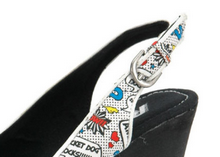 Der originalgetreue Stil verleiht den Schuhen einen leichten Charakter. Alles an den Schuhen wurde mit der verrückten Comics Idee projektiert. Hier wurden leichte und schmale Keilabsätze genutzt, das Obermaterial ist aus einem Fuß freundlichem Stoff. Der Hersteller hat auch an eine weiche Einlage und den Innenschuh gedacht mit zusätzlicher Wattierung im Ballenbereich.