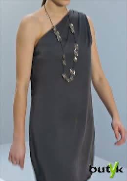 Kleider mit einem Träger sind unglaublich sexy. Diskret unterstreicht dieses Kleid alle weiblichen Attribute, ohne viel Haut zeigen zu müssen. Hierzu passen minimalistische Accessoires. Beachte bei diesem Outfit die Schuhe - interessante Musterung und Verzierung, passend zum ganzen Set.