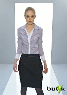 Klassische Hemd verbunden mit einem Rock im modischem Fasson. Hier ist das Hemd fein gestreift, was man ganz ruhig zur Arbeit tragen kann. Hast du schlanke Beine? So ziehe ohne weiteres Stiefeletten an, falls nicht ziehen ganz einfach Stiefel oder Pumps mit Absatz an.