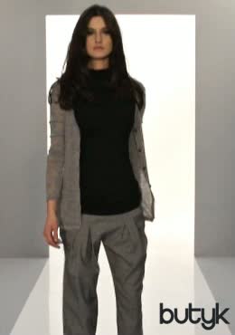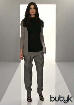 Unabhängig von den aktuellen Modetrends lohnt es sich im Schrank klassische Kleidung zu haben. In diesem Set haben wir eine schicke Verbindung von klassischem Top mit Rollkragen, Blazer und interessant geschnittenen Hosen. Hinzu kommen subtile Stöckelschuhe.